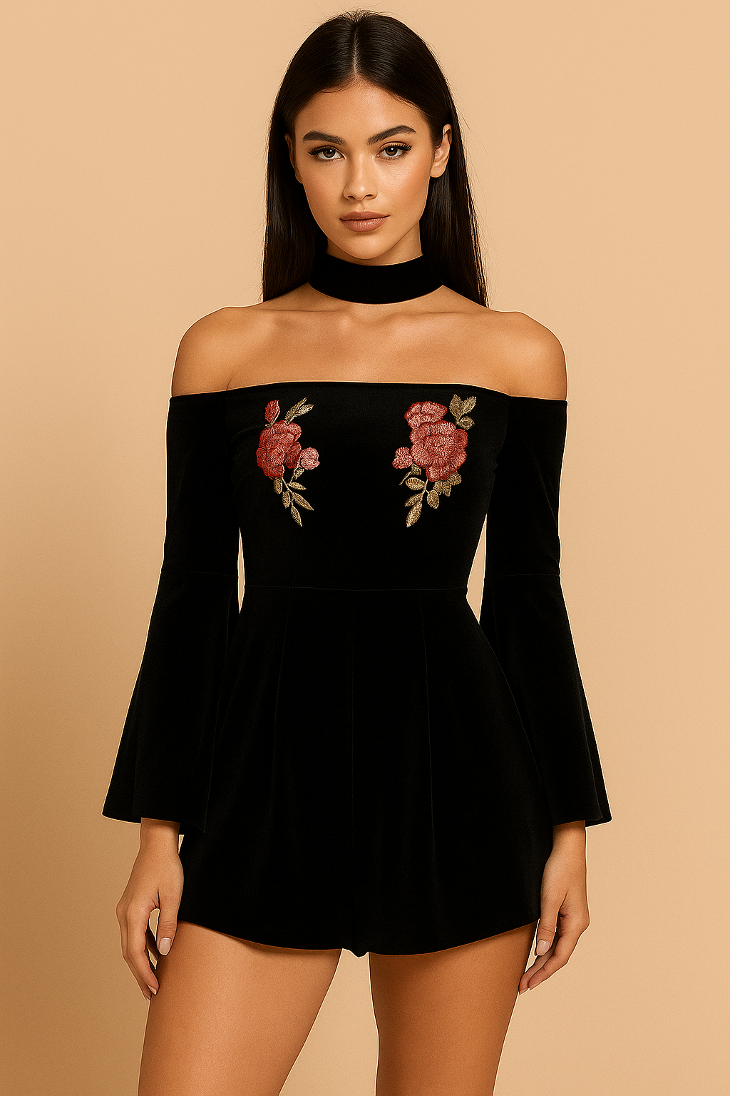 BOTANICAL AND BOUJEE VELOUR CHOKER PLAYSUIT