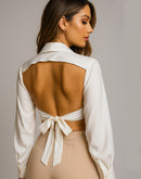 BACK STORY CUT-OUT BOW TIE WHITE SHIRT
