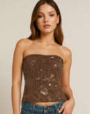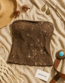 HAUTE KISS EMBROIDERED BROWN BANDEAU TOP