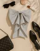 MONACO MUSE WHITE STRIPED MASSIVE BOW BANDEAU TOP