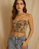 OCTOBER WIND PADDED APRICOT JACQUARD BANDEAU TOP