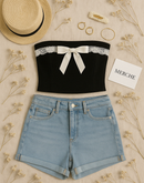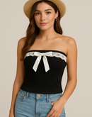 SAYING GOODBYE BLACK LACEY BANDEAU TOP