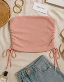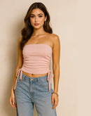 SCROLL PAST PINK DRAWSTRING BANDEAU TOP