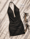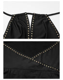 LOW EFFORT STUDDED BACKLESS BLACK DRESS