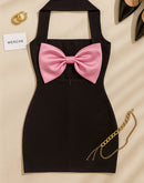 RUNWAY FRAME CHOKER BOW-BACK DRESS