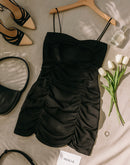 SACRED TIME BLACK RUCHED MINI DRESS