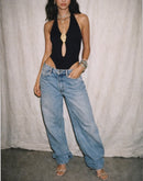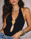 HERE SHE COMES METAL DETAIL BACKLESS BODYSUIT TOP