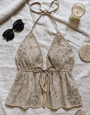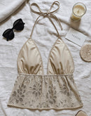 KEEP IT TOXIC EMBROIDERED HALTERNECK TOP