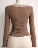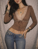 SINGLES ERA BROWN LACEY TOP
