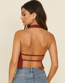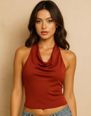WHISPER NOTES BACKLESS COWL LUXE SATIN TOP