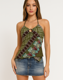 WONDERLAND MUSE PRINTED SCARF HALTERNECK TOP