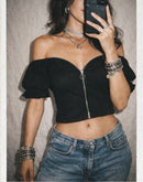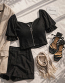 AFTERLIFE MAYBE ZIP-UP LUXE BLACK TOP