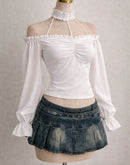 ANGEL CODED WHITE OFF-SHOULDER CHOKER TOP