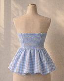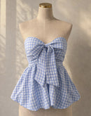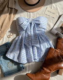 CHECKMATE BABE PADDED BOW BLUE GINGHAM TOP