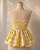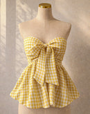 CHECKMATE BABE PADDED BOW YELLOW GINGHAM TOP