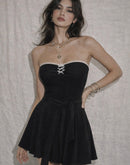 DOLLISH DRAMA LUXE BLACK FLARE DRESS