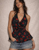 FIX MY HEART ROSES HALTERNECK TOP