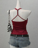 JUST POSING PADDED TWISTED BACK DEEP RED TOP