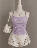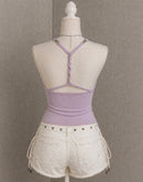 JUST POSING PADDED TWISTED BACK LAVENDER TOP