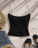 LIKE LOVERS DO LACE DETAIL BLACK CAMI TOP