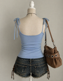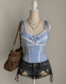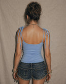 MYKONOS TIME BABY BLUE TIE-UP LACEY TOP