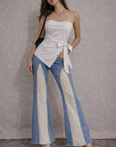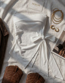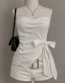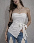 SLIGHTLY TOXIC PADDED BOW-TIE ASYMMETRICAL WHITE BANDEAU TOP