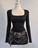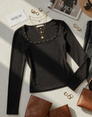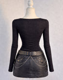 TEENAGE KARMA STUDDED RIBBED BLACK TOP