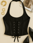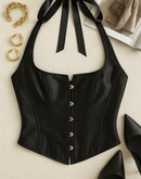 BAY OF GLAM BONING DETAIL CORSETRY HALTERNECK TOP