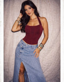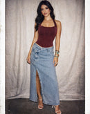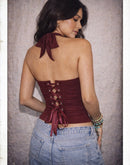 BEFORE HE CHEATS BONING MAROON HALTERNECK CORSET