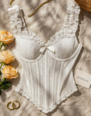 SAND PARTY PADDED BONING EYELET LUXE CORSETRY TOP