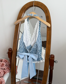 BEING NINETEEN BOW BACK CHECKS BLUE HALTERNECK TOP