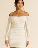 CATCHING SUNSETS WHITE OFF-SHOULDER DRESS