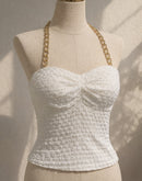 PERFECT PIXIE WHITE PADDED TEXTURED TOP