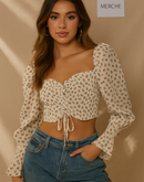 STREET ROMANCE SMOCKED FLORAL WHITE TOP”