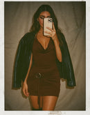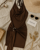 DATING FOR FUN BROWN HALTERNECK DRESS