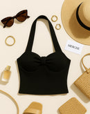GODDESS ALERT PADDED BLACK HALTERNECK TOP