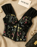MORE MASCARA EMBROIDERED BLACK PADDED TOP