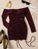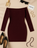 FIRE GIRL SEQUIN OFF-SHOULDER DRESS