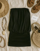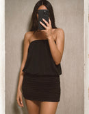 LA GIRL VIBE BLACK DRAPE MINI DRESS
