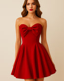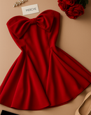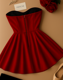 PRIVATE SOIREE LUXE RED BANDEAU FLARE DRESS