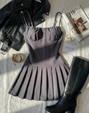 Y2K MOODBOARD GREY MINI PLEATED DRESS