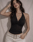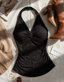 BUTTER BABY TWISTED BLACK HALTERNECK TOP