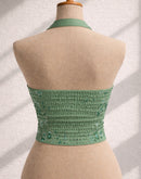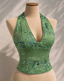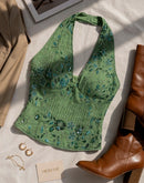 FUEL MY SASS EMBROIDERED GREEN HALTERNECK TOP