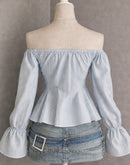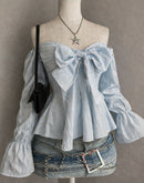 LIKE A MOVIE BOW DETAIL SLASH NECK TOP