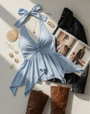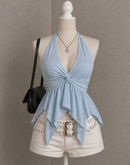MYKONOS CALLING ICE BLUE TWISTED HALTERNECK TOP