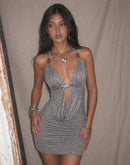 SHE’S A LEGEND SEQUIN DETAIL GREY BACKLESS HALTERNECK DRESS