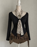 SLAY ERA PADDED SCARF DETAIL BLACK TOP