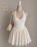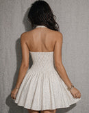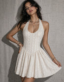 SUNSET SANGRIA FLORAL FLARE HALTERNECK DRESS