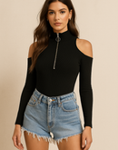 BARE TRUTH ZIPPER BLACK BODYSUIT