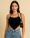 BLING BANDIT EMBELLISHED VELOUR HALTERNECK TOP